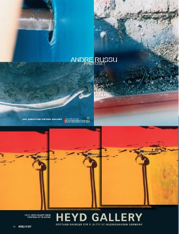 Andre russu PHOTOSET © ART ADDICTION VIRTUAL gALLERY +46 8 85.72.64 INFO@ARTADDICTION.NET WWW.ARTADDICTION.NET HEYD GALLERY ABOVE: HEYD GALLERY SHOW PAINTINGS BY IN-SOONG GOTTLIEB-DAIMLER STR 9, D-711 57 HILDRIZHAUSEN GERMANY 70 WORLD of ART