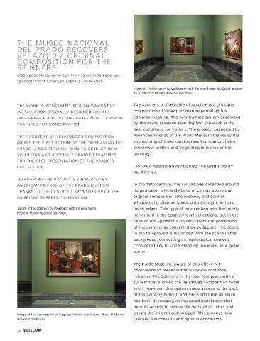 THE RECOVERY OF VELAZQUEZ’S COMPOSITION American Friends of the Prado Museum thanks to the