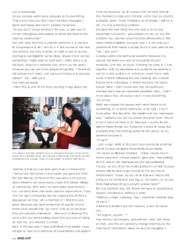 THIS IMAGE CAPTURES UMBERTO ECO IN CONVERSATION WITH PETRU RUSSU “To return to Michael Crichton - I think I wrote this in